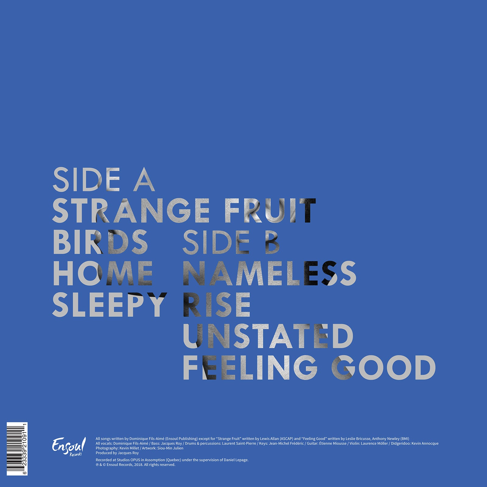 Toutes les chansons écrites par Dominique Fils-Aimé (Ensoul Publishing) sauf « Strange Fruit » écrit par Lewis Allan (ASCAP) et « Feeling Good » écrit par Leslie Bricusse, Anthony Newley (BMI)
